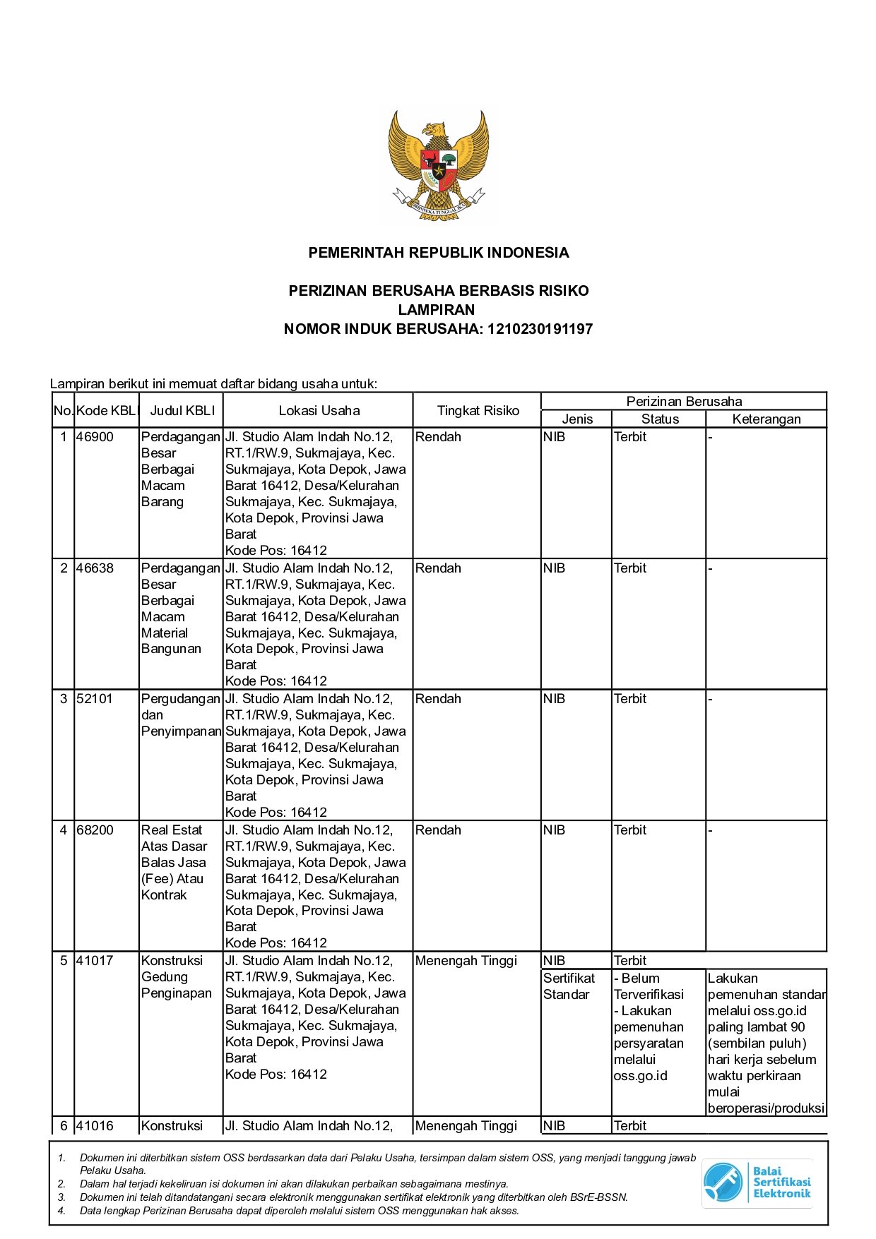 Bagi kami, ini bukan sekadar formalitas, melainkan jaminan kami kepada Anda. Legalitas yang lengkap memastikan bahwa setiap kerja sama berjalan dengan transparan, setiap proyek dikelola dengan aman, dan setiap hasil dapat kami pertanggungjawabkan. Bermitra dengan kami berarti Anda memilih ketenangan dan kepastian hukum.